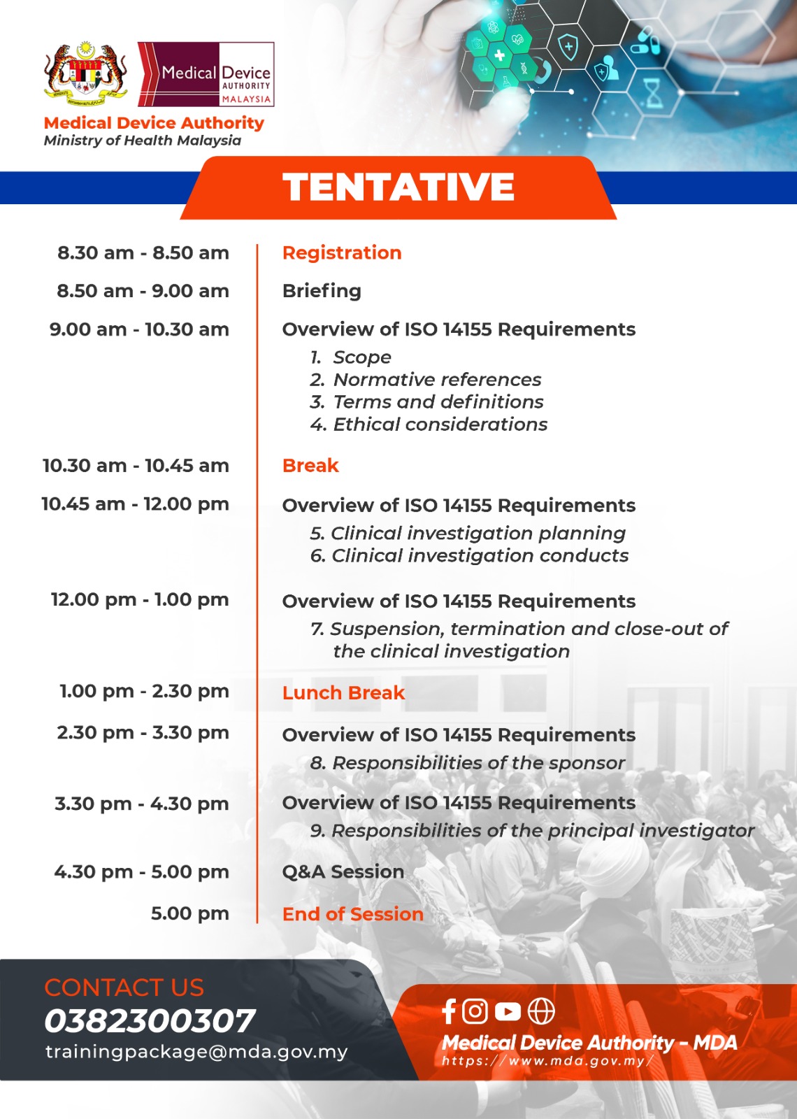 The training provides standard guidance to medical device manufacturers and clinical research professionals for how to implement Good Clinical Practice (GCP) for pre- and post-market clinical investigations carried out in human subjects to assess the clinical performance or effectiveness and safety of medical devices. Certificate of attendance will be given to the participants.