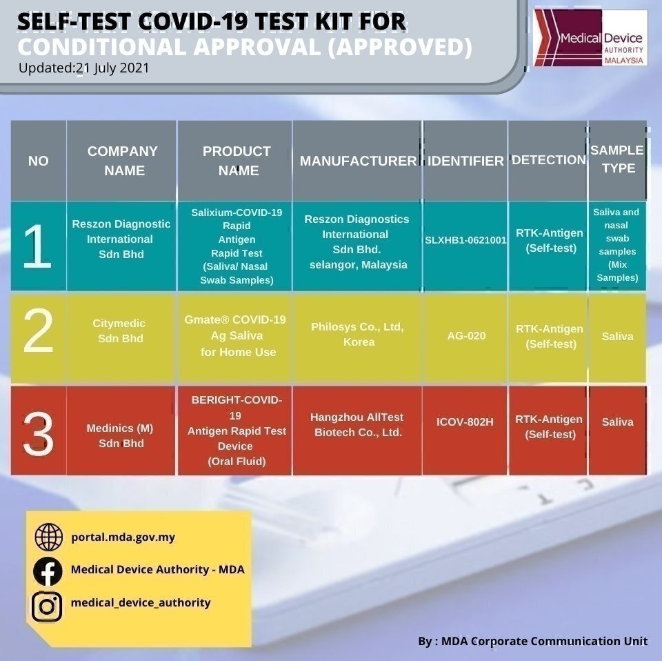 3. Self-Test Covid-19 Test Kit For Conditional Approval (Approved) Updated on 21 July 2021