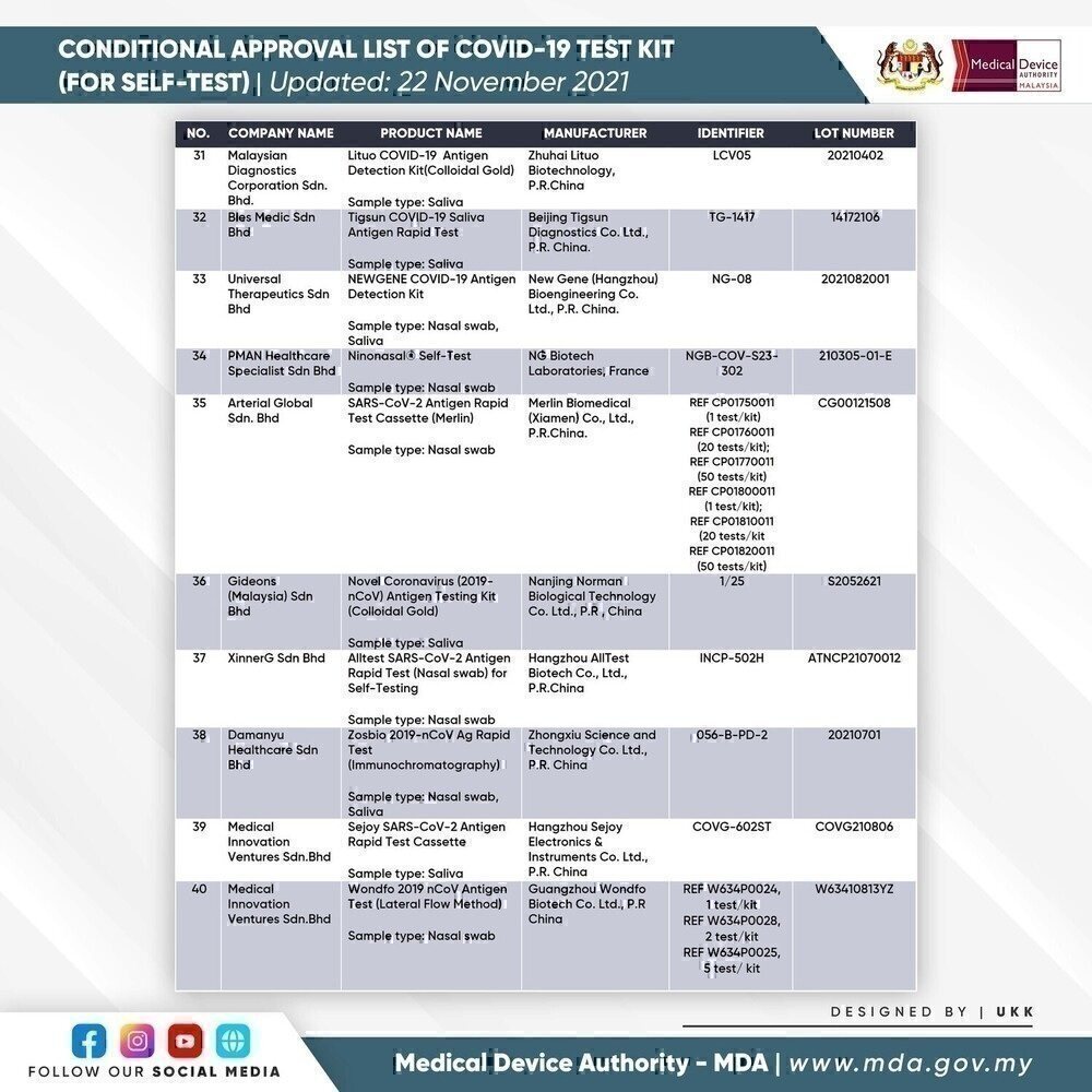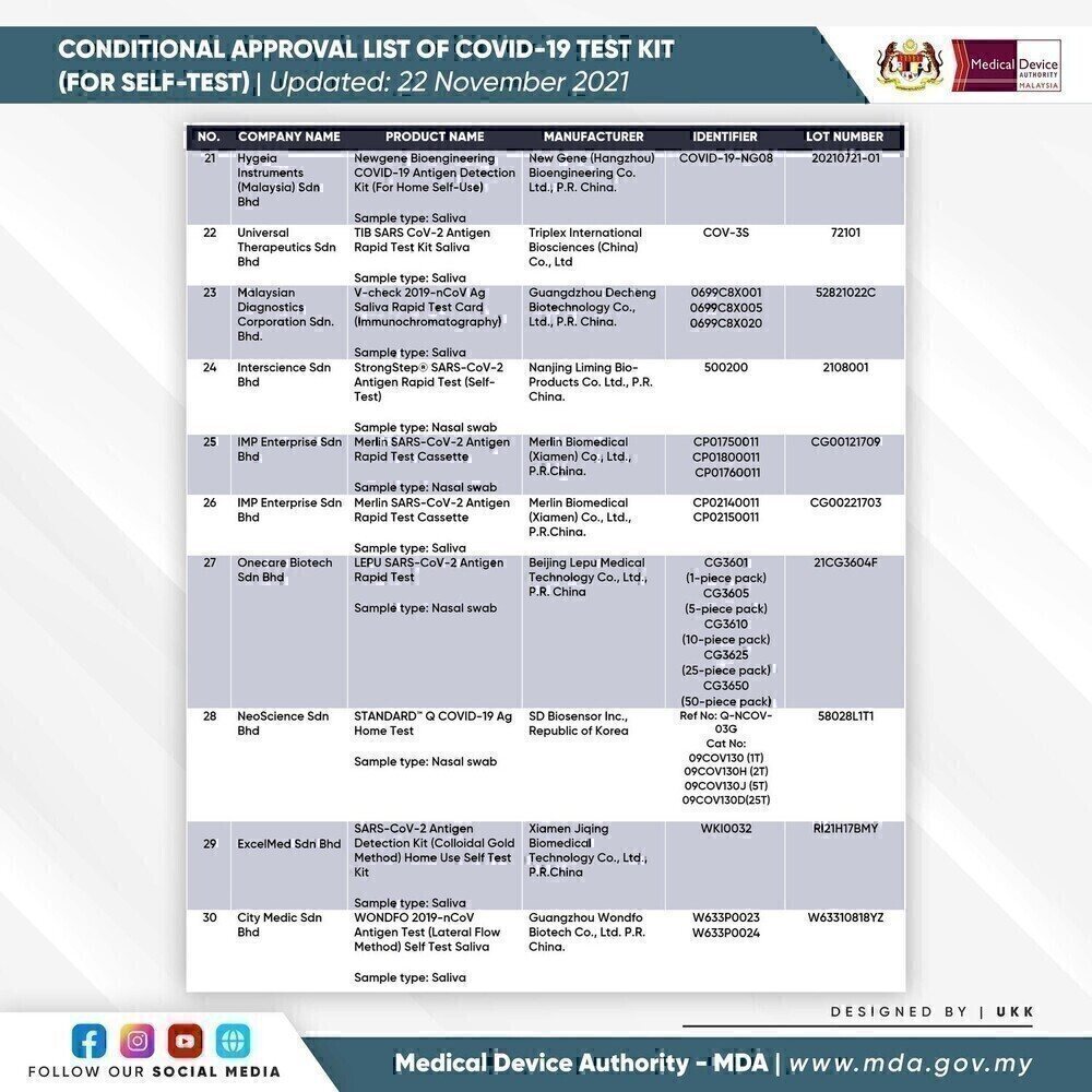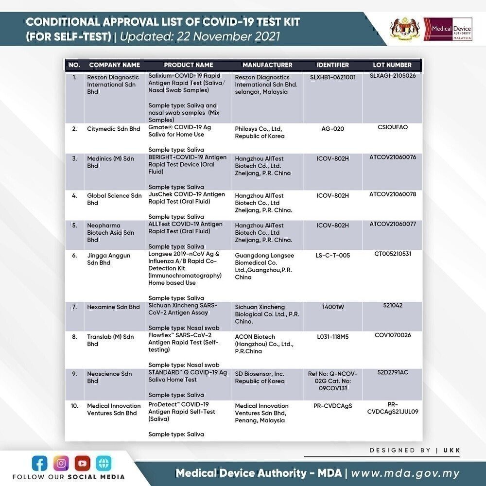 SELF-TEST COVID-19 TEST KIT FOR CONDITIONAL APPROVAL (APPROVED) - 22 NOVEMBER 2021