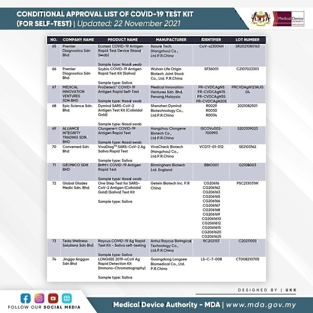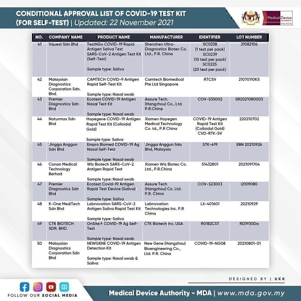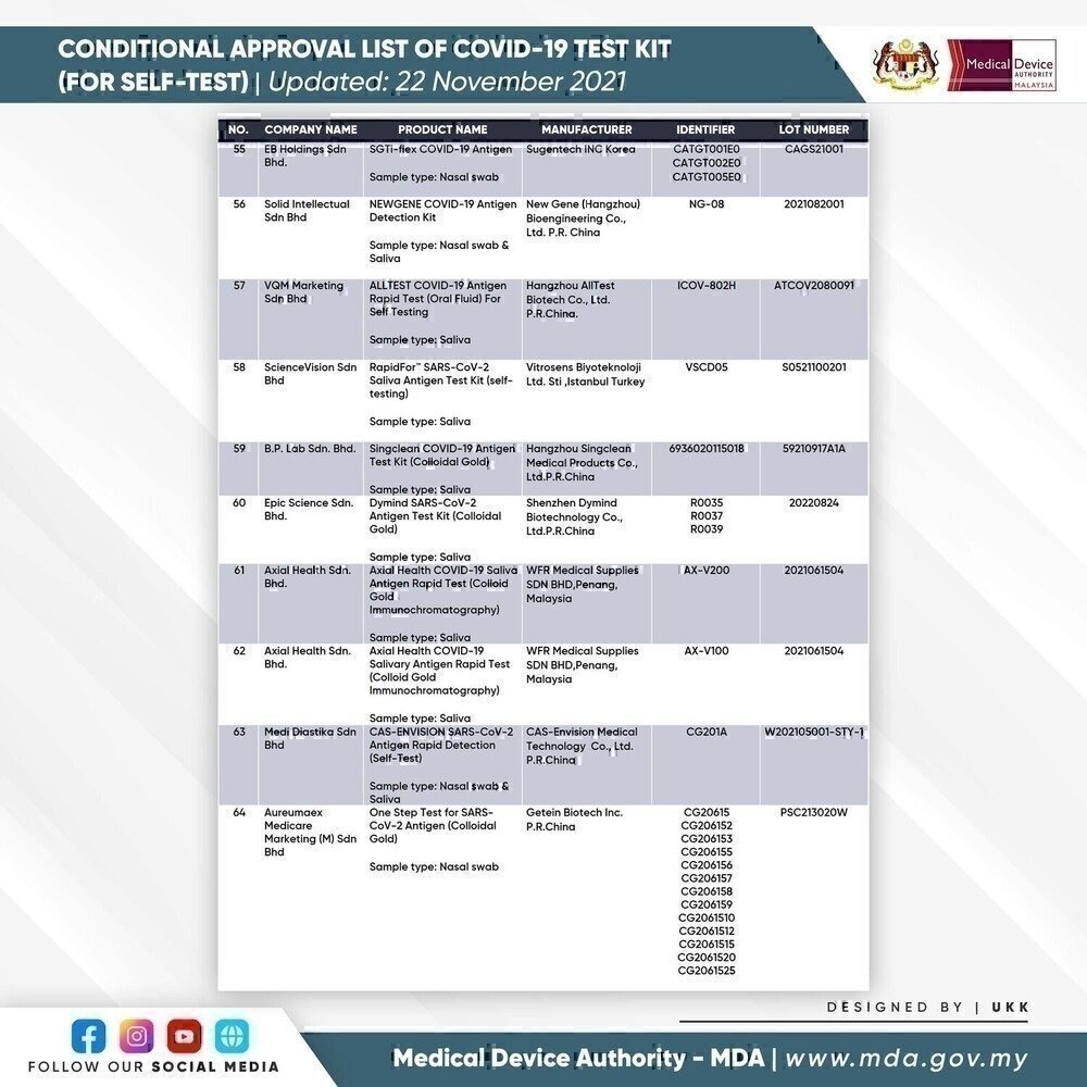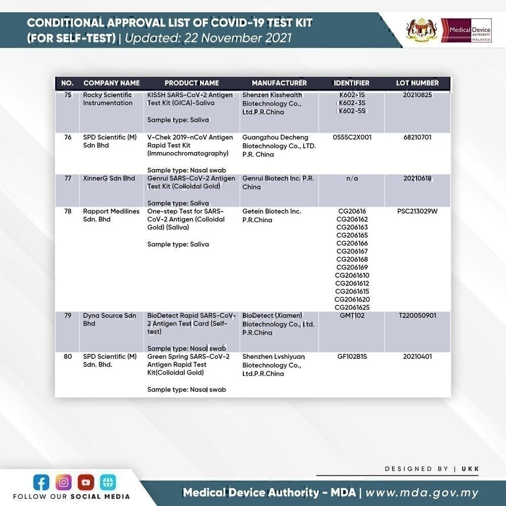 SELF-TEST COVID-19 TEST KIT FOR CONDITIONAL APPROVAL (APPROVED) - 22 NOVEMBER 2021