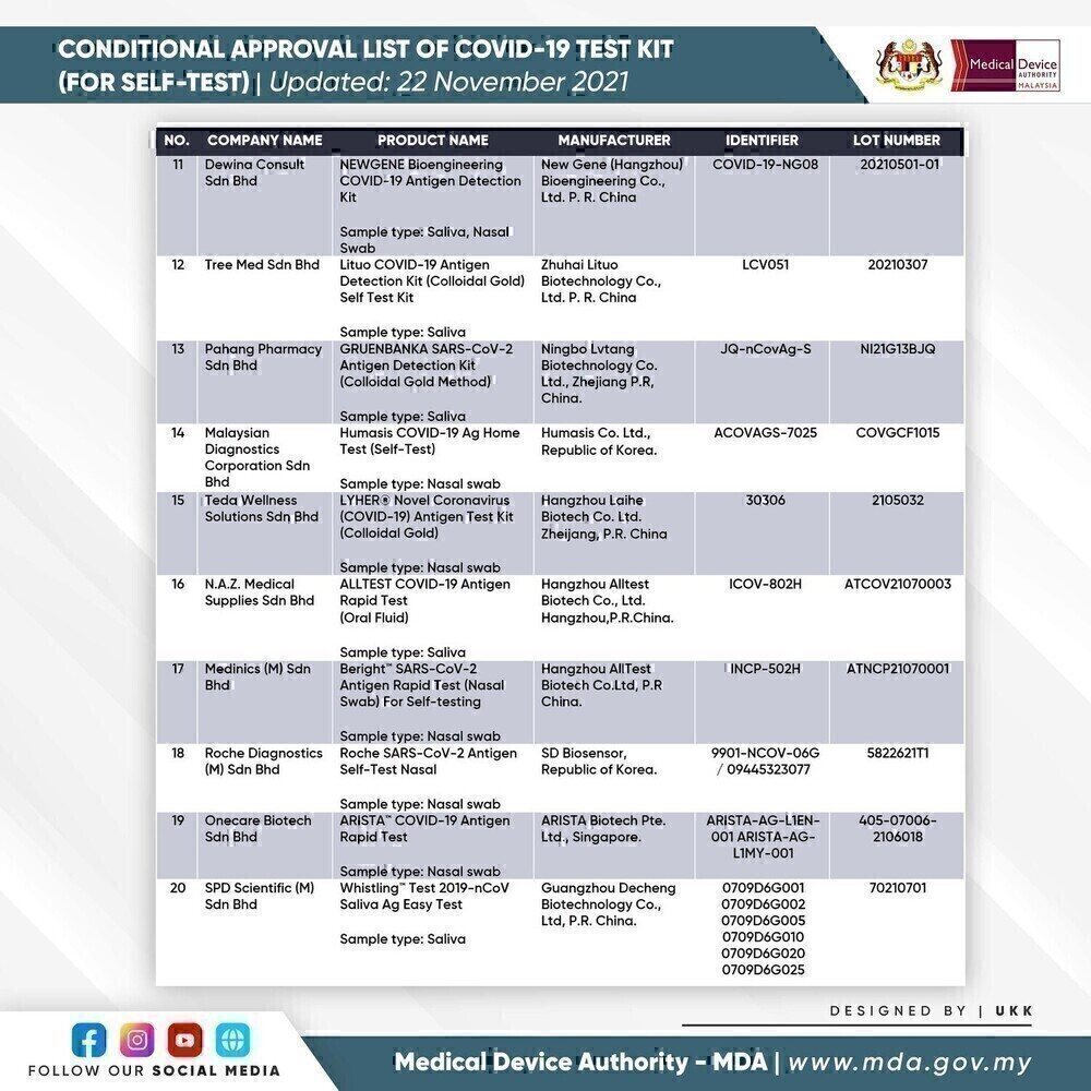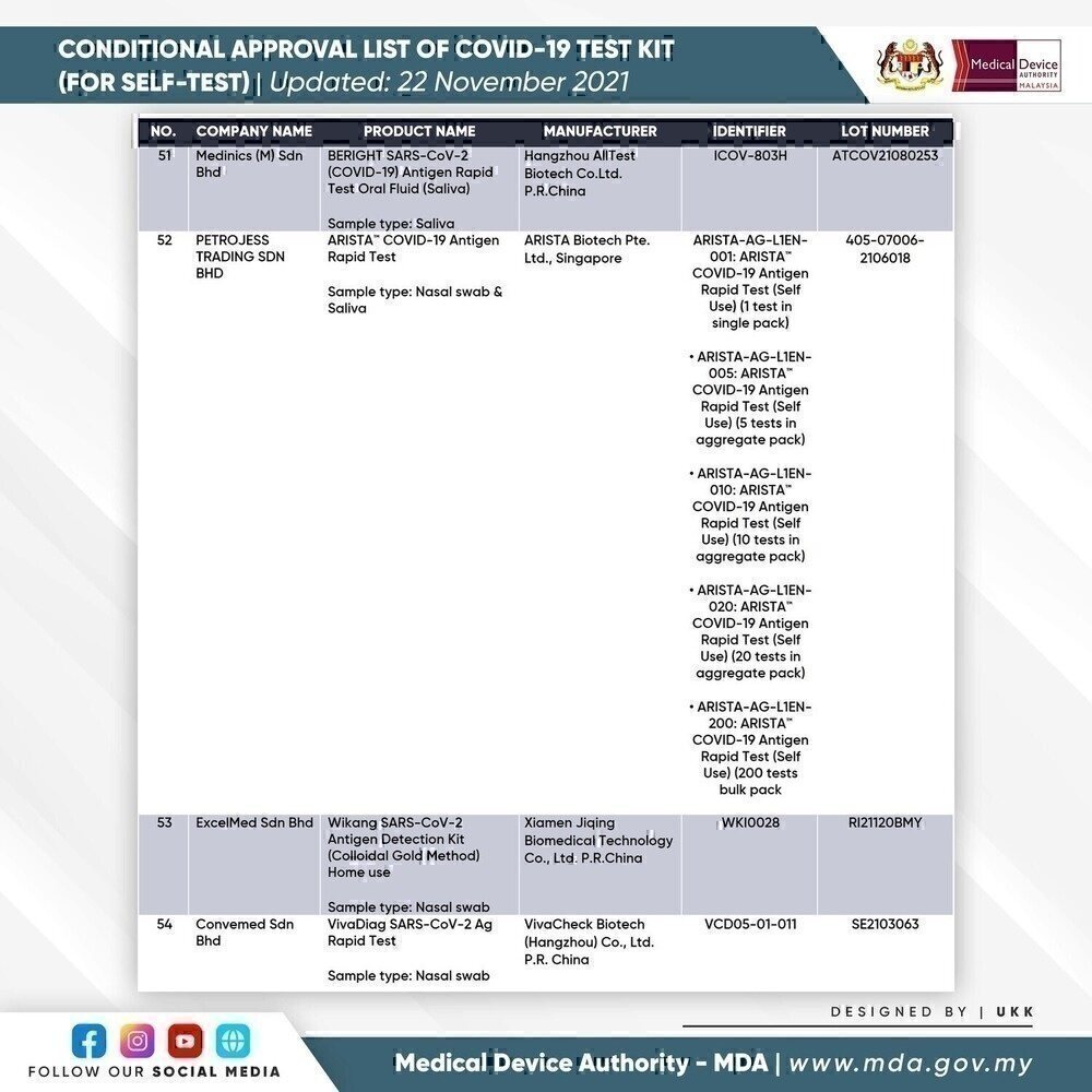 3. SELF-TEST COVID-19 TEST KIT FOR CONDITIONAL APPROVAL (APPROVED) - 22 NOVEMBER 2021