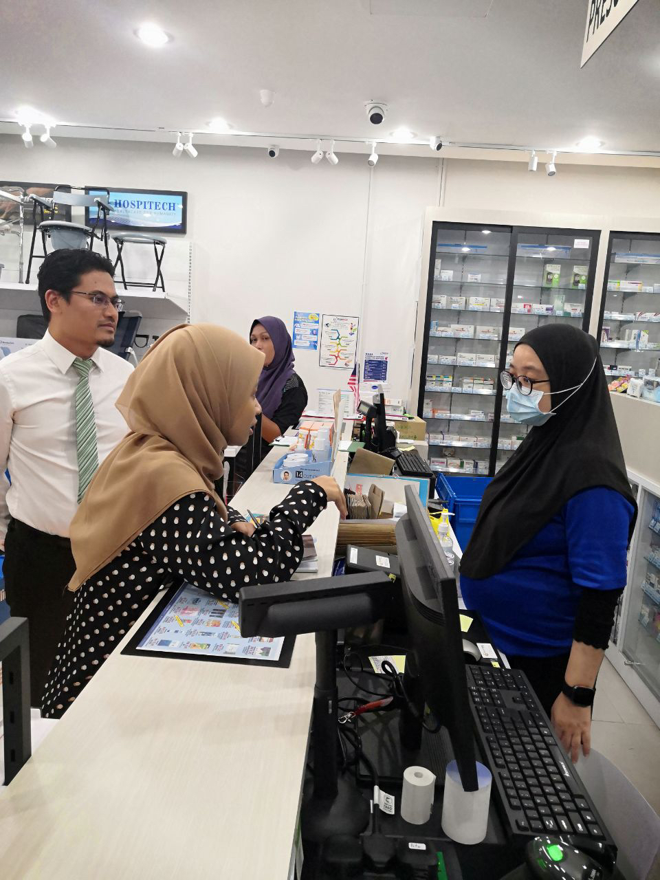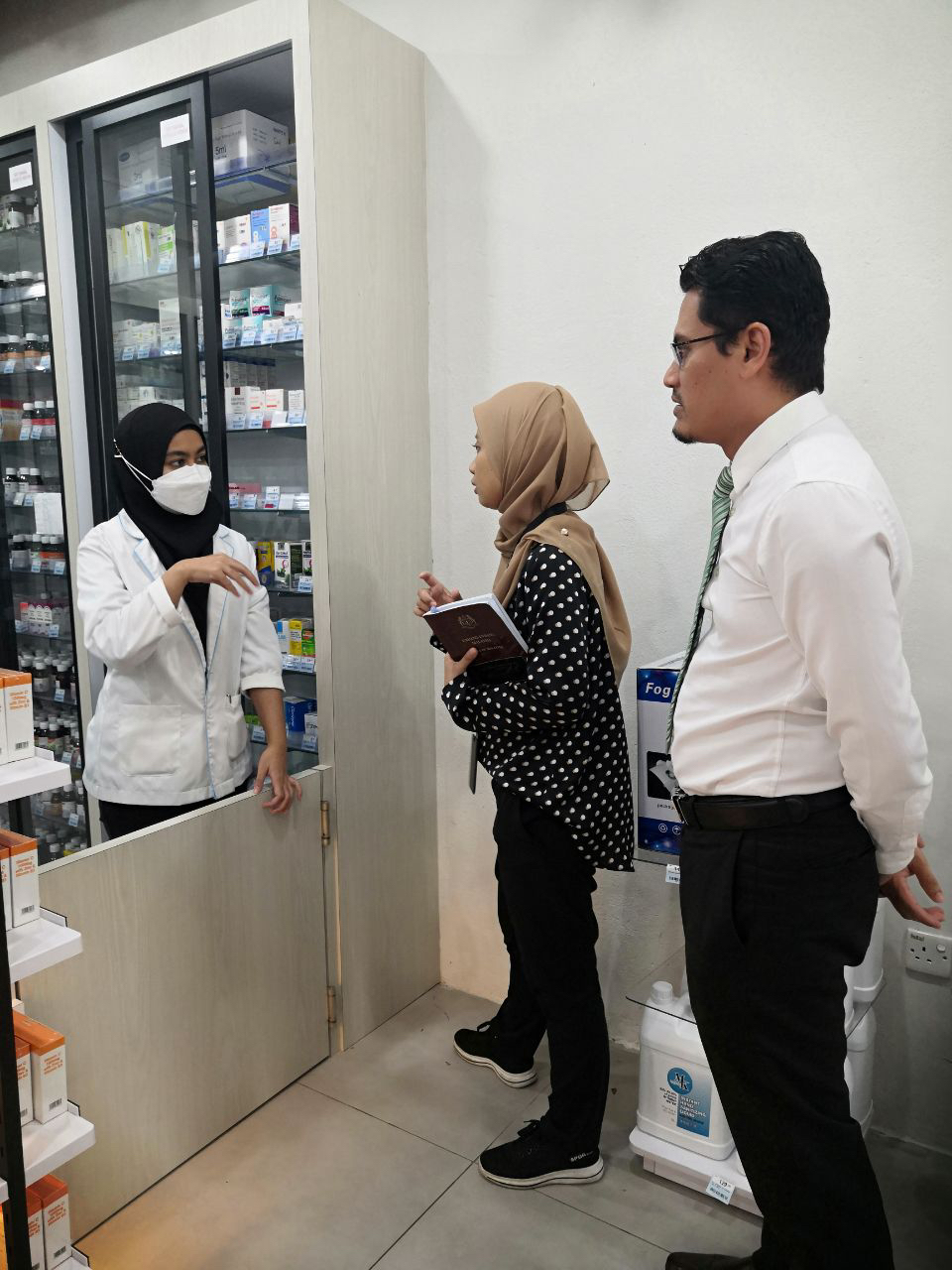 Selain itu, lawatan ke farmasi ini telah diketuai oleh ini Cik Nur Farahna Binti Talib, Penolong Pengarah Penguatkuasa dan turut disertai oleh Encik Mohd Shahrezza Bin Sirun, Penolong Pengarah Kanan Dasar, Encik Muhammad Hazman Bin Mohd Zaini, Penolong Pengarah Kanan Kawalan Pra Pasaran serta diiringi oleh pegawai-pegawai MDA yang turut bersama-sama menyertai sesi ini.