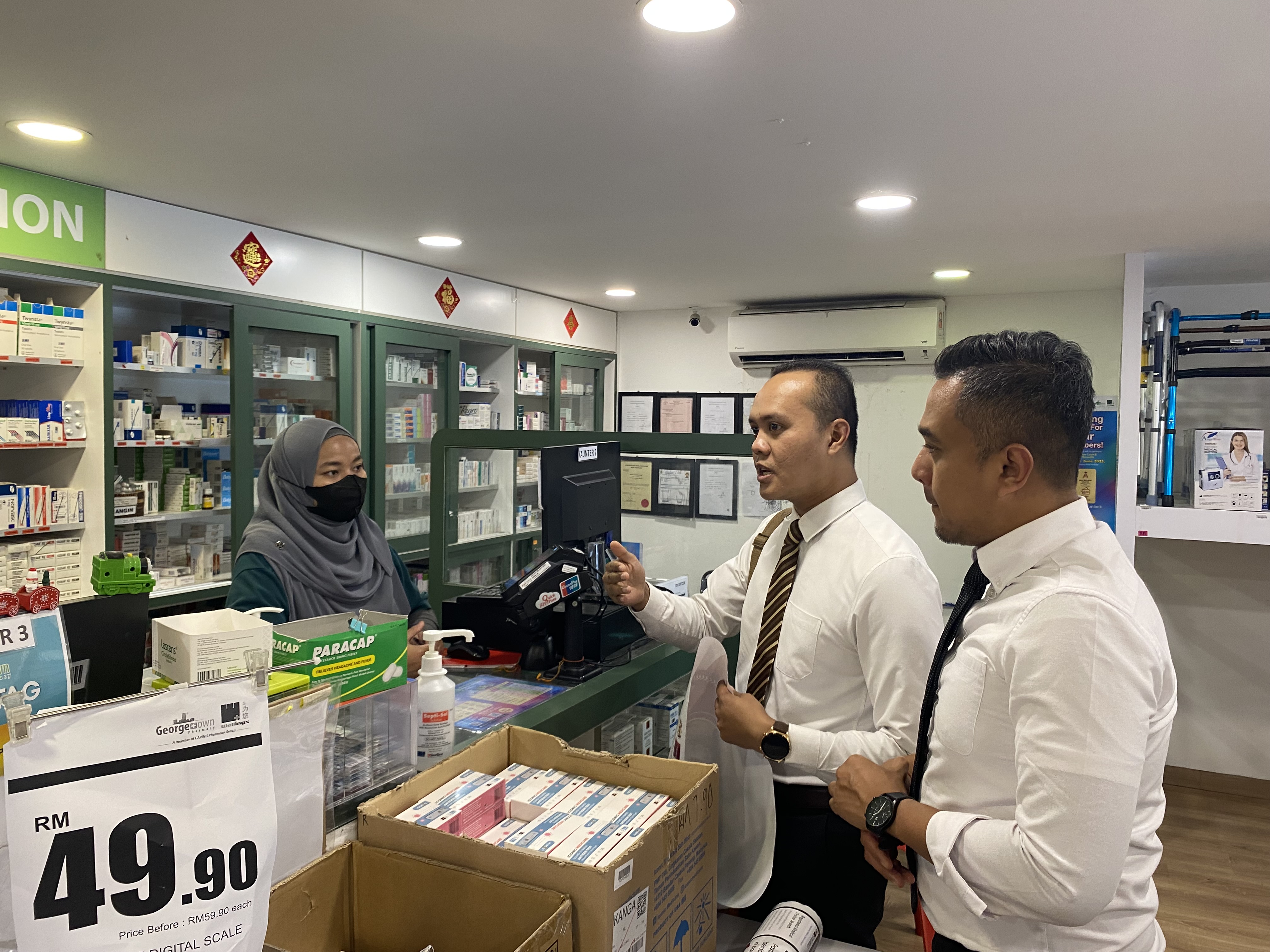 21 JUN 2023, Kangar – Pihak Berkuasa Peranti Perubatan (MDA) telah mengadakan lawatan ke farmasi-farmasi yang berada di sekitar Bandar Kangar untuk memberi kesedaran kepada orang awam mengenai peranti perubatan yang dijual di farmasi tersebut.