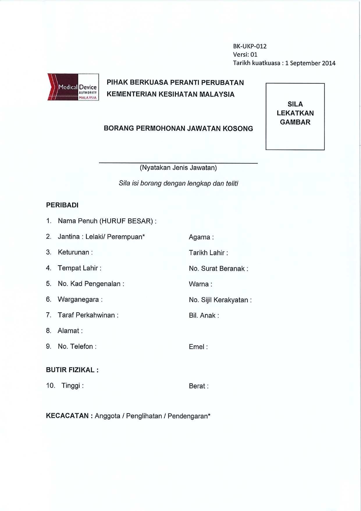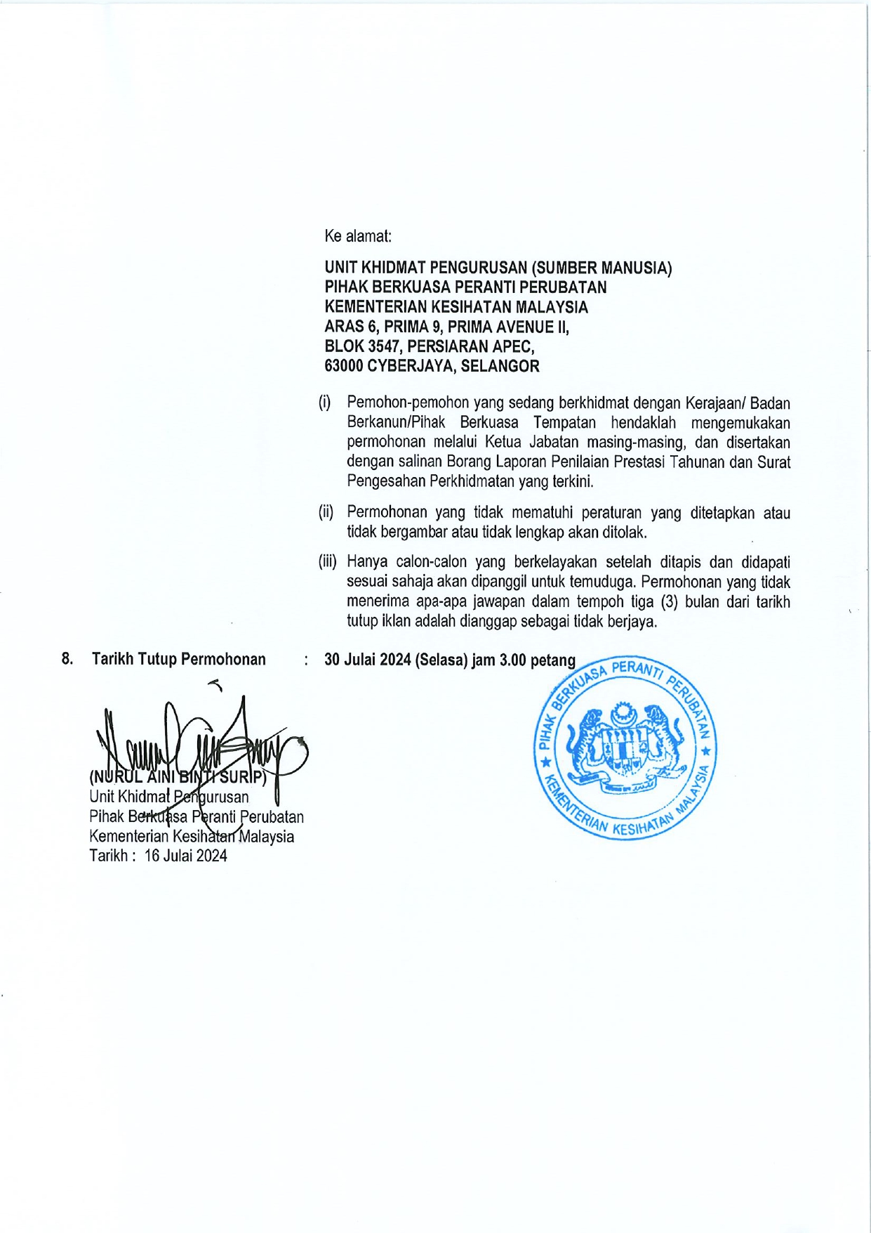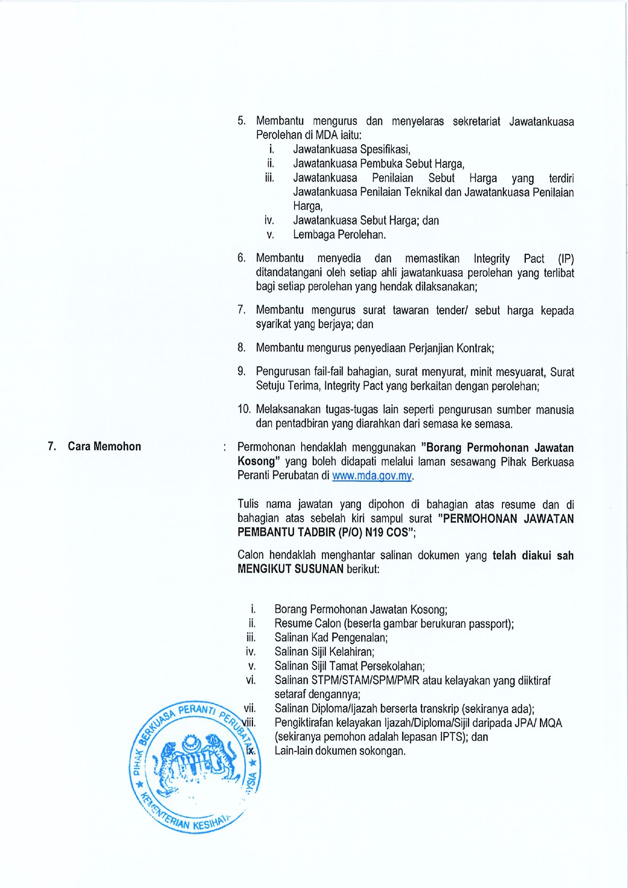 IKLAN JAWATAN PEMBANTU TADBIR (PERKERANIAN DAN OPERASI) GRED N19 (Contract of Service)