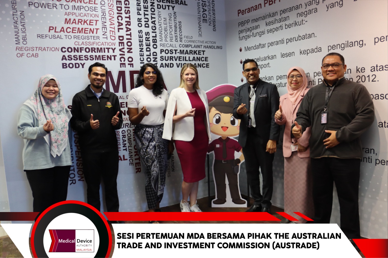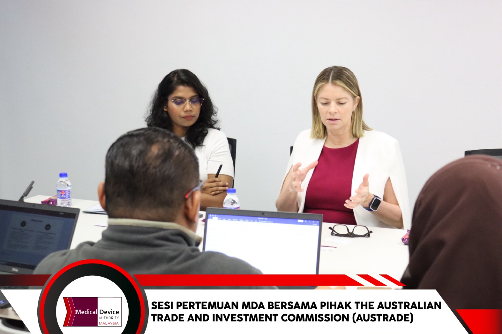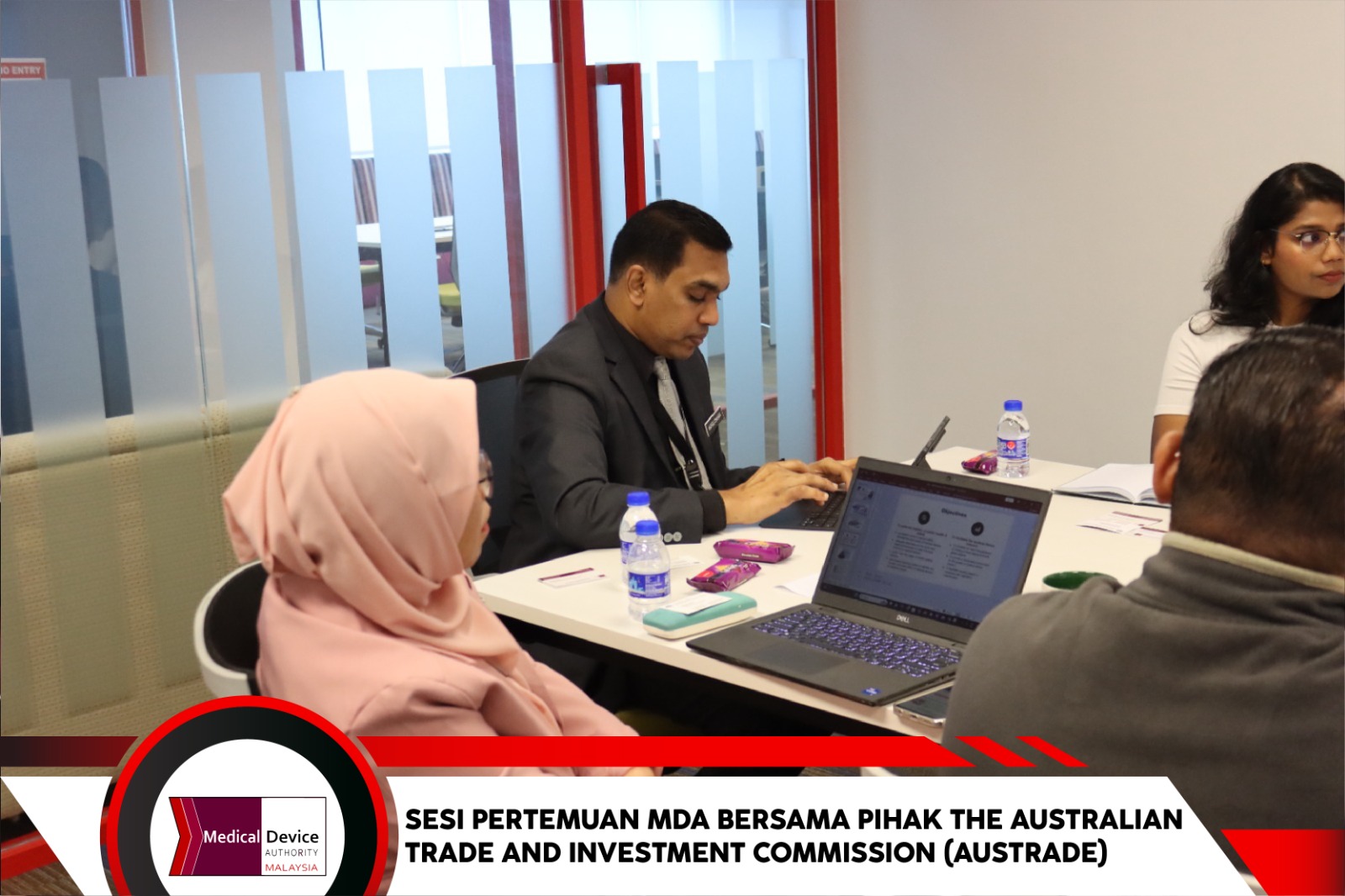 Cyberjaya, 12 Januari 2024 – Sesi pertemuan Pihak Berkuasa Peranti Perubatan (MDA) bersama The Australian Trade and Investment Commission (AUSTRADE) telah berlangsung di Bilik Bakawali, MDA. Sesi yang dipengerusikan oleh Dr. Muralitharan Paramasua, Ketua Eksekutif MDA ini telah dihadiri wakil dari AUSTRADE iaitu Ms. Melanie Harris, First Secretary, Trade & Investment Commissioner dan Ms. Pragase Komargan, Business Development Assistant Health and Consumer.